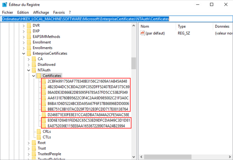 Fichier:MMCREGEDIT HKLM SOFTWARE MICROSOFT ENTERPRISECERTIFICATE NTAUTH CERTIFICATES IGC.png
