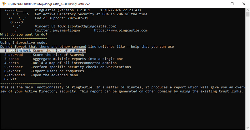 Fichier:PINGCASTLE HEALTHCHECK SELECT.png
